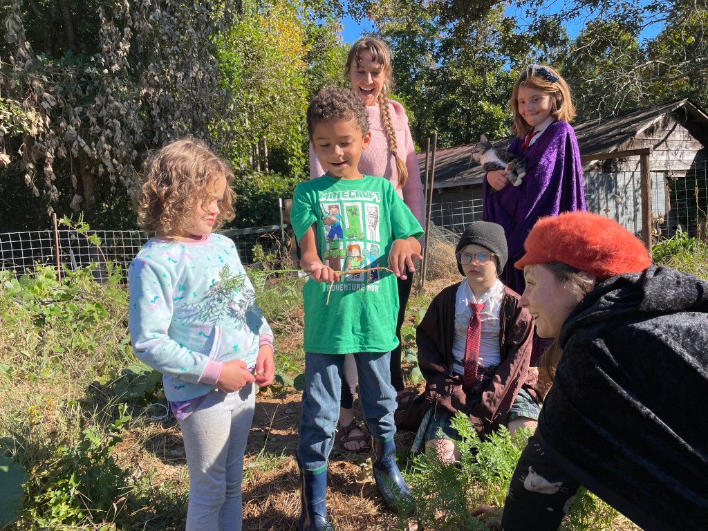 I also need to celebrate the incredible teachers that have made this program possible. Terra, Paul, Maya, and Camden each bring an authentic and thoughtful presence to our children. I have such a deep respect and reverence for each of these humans who are not only my friends, but my teachers. I have learned so much this year along side our students. As a child, I wasn’t that outdoorsy, and I still feel I have so much to learn about the earth, gardening, and nature. After we learned about edible plants this past term, such as cat briar tips, sourwood leaves, baby pines, I noticed how attuned I was when I went walking in the woods on my own. I was paying attention to what was growing and I snacked on these plants along the way. I could feel a deeper relationship with my environment than I have ever felt before. As I experienced this for myself, I witnessed a similar transformation in the children. We were learning side by side about the names, qualities, and benefits of various plants. It helped me to understand how to guide and scaffold their learning because I was learning with them. I remember when we first started the discussion last year about what ROL would be, we said, “Why would we want to always be teaching about things that we already know.” This attitude has continued and keeps every week exciting for both the children and the teachers.