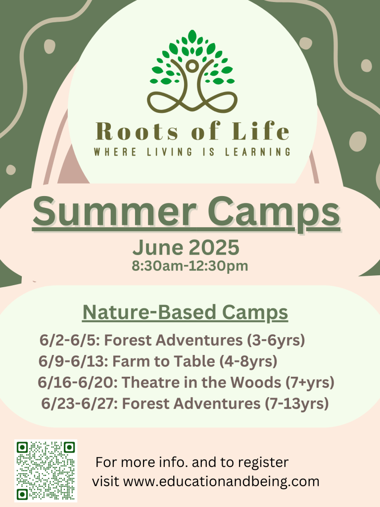 Our camps will be primarily outdoors and children should dress appropriately for the weather and come with a water bottle. We will provide a small snack each day. The weekly fee Mon-Friday is $155 ($135 for Forest (6/2-6/5, Mon-Thurs.) and there is a discount for siblings. As always, we can discuss alternatives for families who aren’t able to afford the camp fees. Please let us know if finances are a limitation when you apply. If your child is not currently attending Roots of Life, you can complete the registration form for summer here. Please download the form and email to andrealaubstein@gmail.com.